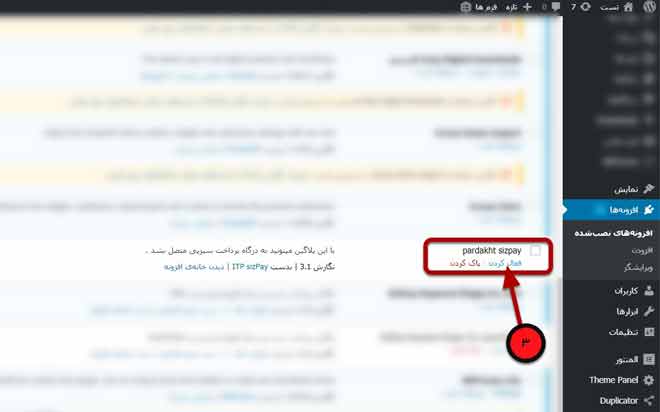 1- در بخش افزونهها > افزودن بروید و پلاگین وردپرس سیزپی را بارگذاری و نصب نمایید.